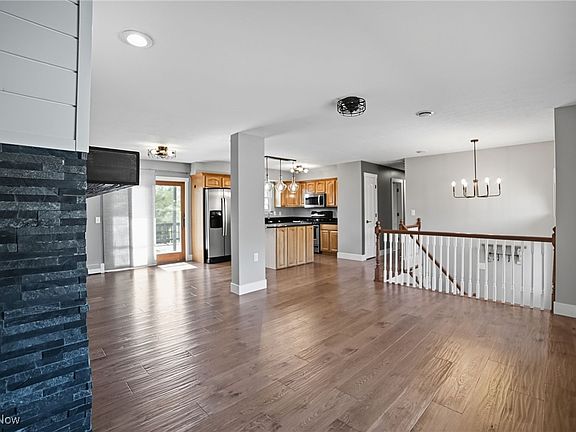 Welcome to this beautifully updated 3 bedroom, 2 full bath bi-level home featuring a blend of craftsmanship and modern design. Step inside and you’ll be greeted by custom Amish hardwood floors and a bright, open floor plan where the center wall has been removed to create a seamless flow. The expanded kitchen, complete with appliances is a true highlight, complete with black granite counters, an inset sink, a center island, bar seating, and plenty of space for cooking and entertaining.