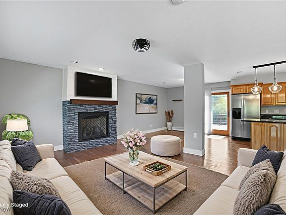 The cozy gas fireplace adds warmth and charm to the main living area, while the modern lower-level bathroom showcases a tiled walk-in shower and stylish finishes. A space-saving barn door leads to the laundry room, maximizing function and style. The lower living area is great extra space and reconfigured for ample storage as well as a perfect gathering space for game nights!