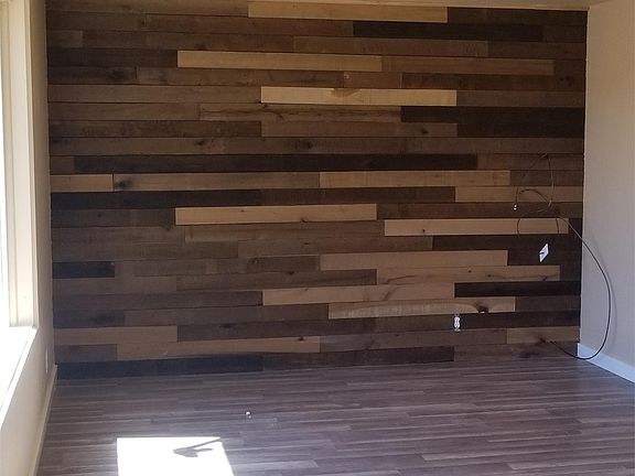 Exposed wood beamsAccent wallsTop notch appliancesLarge windows
