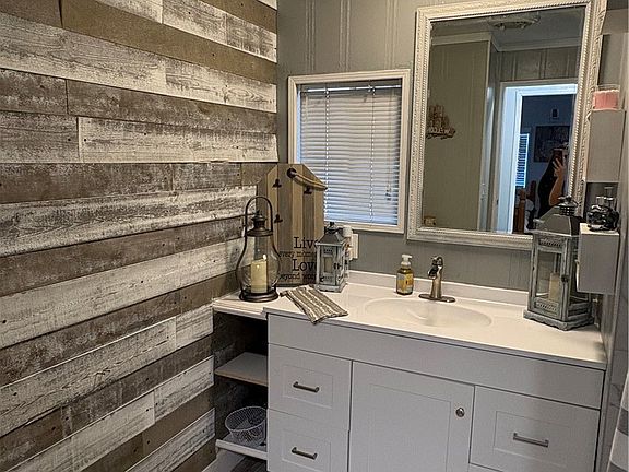 Beautiful manufactured home on permanent foundation is the perfect country charmer in The Farm, nestled on a quiet cul-de-sac street with wonderful curb appeal, mature shade trees, a covered side patio perfect for relaxing in the evening breeze, and an oversized garage large enough to fit a boat. This charming home offers numerous updates, including new plumbing throughout, newer roof, AC system is about five years old; the ductwork was also updated: NEST system, Ring camera at front door, and new gutters. Inside, you'll find a brand new kitchen with stylish cabinetry with quartz countertops; new dishwasher, remodeled bathrooms, and a spacious open layout ideal for entertaining. The dining room is perfect for hosting intimate dinners. The primary suite features a large closet and updated bath, while the secondary bedroom is generously sized. Additional highlights include newer flooring and dual-pane windows; the hallway, laundry, and pantry area are freshly painted; there is a separate laundry area. The backyard provides a great space for gatherings with plenty of room to garden or relax under the shaded trees with wood fencing. Move-in ready and full of charm - this one is a must-see!