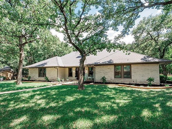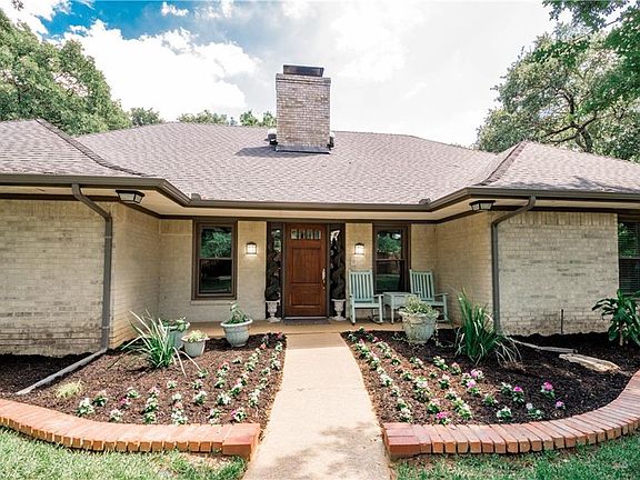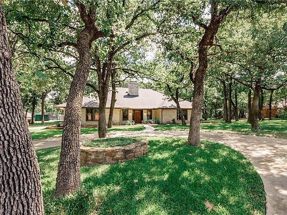 Gorgeous one story home in desirable Corinth neighborhood! Stunning neighborhood with tons of trees and gated entrance is ideal for privacy! Home opens to large living room featuring gorgeous brick fireplace, custom built ins, and beamed high ceiling! Gourmet kitchen with granite counter tops, contemporary vent, and dining room flow into utility room and full bedroom and bathroom! Master suite includes jetted tub, separate shower, dual vanities, and walk in closet with sky light flooding bathroom with natural light! Covered patio overlooks massive backyard and community pool, and tennis court! Unique neighborhood, amazing amenities! Highest rated Hawk elementary with incredible Special Ed program!!
