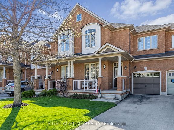 MOVE-IN-READY, 2-storey, 3-bedroom FREEHOLD townhome by Aspen Ridge. Bright, open-concept layout, designed for both everyday living and effortless entertaining. Eat-in kitchen featuring enamelled steel appliances, granite countertops, maple cupboards, a spacious pantry, and walkout access to the backyard. Fully fenced outdoor space with low-maintenance gardens. The cedar deck is perfect for relaxing or outdoor entertaining. The main floor boasts pot lights, an abundance of natural light, and a seamless flow between the kitchen and family room. Enjoy the gas fireplace with a limestone surround, beautiful custom-built-in cabinetry in the family room, and classic high baseboards atop gleaming hardwood floors. Direct inside access to the garage, plus a BONUS secondary garage door to the backyard, enhances everyday convenience. A separate dining room is ideal for hosting guests, complemented by a stylish 2-piece powder room. Upstairs, double doors lead to a large primary bedroom with hardwood flooring and two spacious walk-in closets. The 4-piece ensuite features a window for natural light, a walk-in shower, and a jacuzzi tub. Two additional spacious bedrooms and a 4-piece main bathroom complete the upper level, each offering ample closet space. Fully finished lower level that is designed for versatility, with cozy berber carpeting, a recreation room highlighted by an electric fireplace and bookshelves. Roughed-in bathroom, framed with walls and a pocket door, is ready for your final touches. Ample storage solutions include a cold room, under-stair storage, and an additional utility room. The current owners' pride of ownership is evident, making it a breeze for you to move in and claim this home as your own. Located just steps from wooded trails, parks, and Lake Ontario. Minutes to Bronte Village, the QEW, and GO Transit, this home is in a cherished, family-friendly, prestigious Lakeshore Woods neighbourhood where nature and community come together.