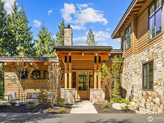 Soaring ceilings and bold mountain modern rooflines define this stunning 4-bedroom plus loft Tumble Creek retreat, perched above the Cle Elum River watershed for a ridge-top feel. Expansive outdoor living includes a hot tub, fire pit, and full outdoor kitchen. Inside, two main-floor suites offer comfort and privacy, while the loft with bunk beds adds fun and flexibility. Premium finishes include a Miele range, Sub-Zero fridge, beverage fridges, and a metal roof. Enjoy easy access to pickleball, paved trails, and parks. Optional Club amenities: private golf, swim/fit club, dining, and more.