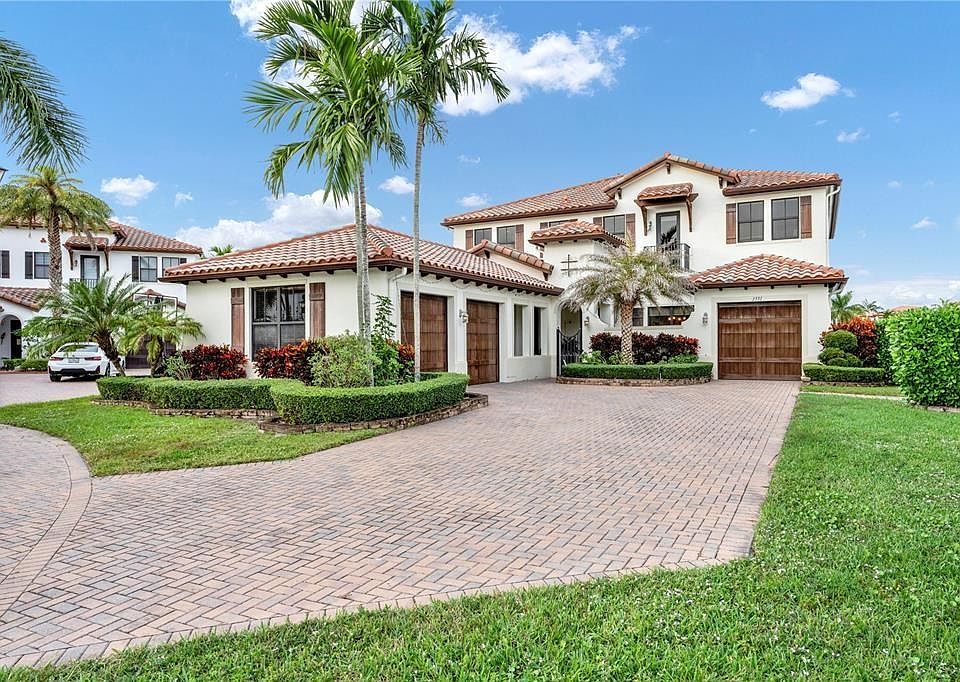 Luxury waterfront home nestled on a private cul-de-sac in the exclusive gated community of Monterra. This stunning Delano model offers 6 bedrooms, 5.5 bathrooms, a 3-car garage, and a private guest house/office. Enjoy panoramic lake views from the oversized lot featuring a heated pool, spa, and extended travertine deck. Interior highlights include a spacious master suite, hurricane-impact windows, and marble flooring throughout. Resort-style amenities include a fitness center, tennis and basketball courts, clubhouse, playground, and dog park. Zoned for A+ rated schools with easy access to I-75, I-95, and the Turnpike.