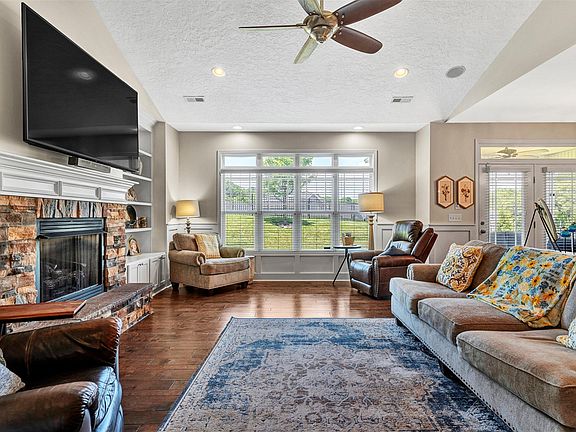 This gorgeous ranch sits in a cul-de-sac and features a large living area with vaulted ceilings and is also open to the kitchen and dining room, a gorgeous custom kitchen with island, granite countertops, stainless steel appliances, a farm sink, wine rack and a tiled back splash, a beautiful primary suite with a huge custom closet, tiled shower, claw foot tub, and granite in both of the bathrooms. Other upgrades include extensive moldings throughout, built in bookshelves, built in speakers, a covered front porch and back patio along with stunning mountain views.