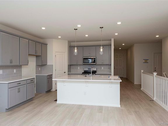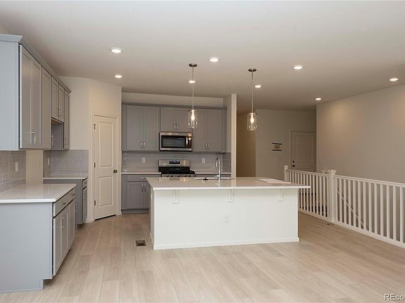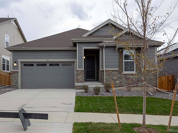 Welcome to this brand new, ranch-style KB Home in the Sweetgrass community. With its open floor plan and modern upgrades, this 3 bedroom residence provides an inviting atmosphere for families and entertainers alike. Inside, the living room, dining area and kitchen are seamlessly connected and bathed in natural light from the additional window package. The kitchen is outfitted with stylish quartz counters and a sizable island to provide ample space for meal preparation or chatting and the stainless steel appliances, including a gas range, make cleaning a breeze. The primary bedroom suite offers a peaceful retreat with its generous size, plush carpeting, and an en-suite bathroom for added privacy. Two additional bedrooms provide versatility for a growing family or guests and the spacious den makes a perfect office or kids play room. This home also comes with an unfinished basement - endless possibilities! Sweetgrass is also within a mile of I25 for easy access to local amenities, schools, parks, and shopping centers. Don't miss this incredible opportunity to own your dream home. Schedule your showing today and experience the comfort and potential this
