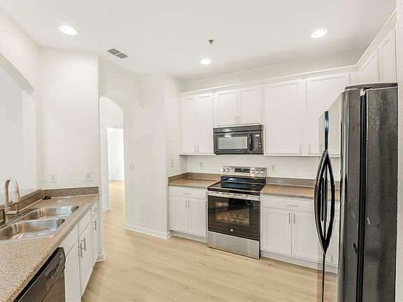 Newly Renovated! This is a cozy and very spacious 3-bedroom/2-bath condo in the desirable Flora Ridge gated community on the 3rd floor with convenient elevator access. Featuring split floor plan, luxury vinyl flooring throughout the unit and lots of natural light. The kitchen has a breakfast nook, new sink, faucet and stainless-steel range. Ceiling fan is in the living room and each bedroom. Laundry room has washer and dryer included. Primary suite features a large walk-in closet, a very large bathroom with his and her sink. The screened-in patio is perfect for relaxing and entertaining family and friends. The community features a pool, parks and walking trail. Located near major highways with easy access to Disney, restaurants, shopping, many Attractions and entertainment. Rent includes, assigned covered parking, trash, sewer and lawn care. This one is just waiting for you to call home!!