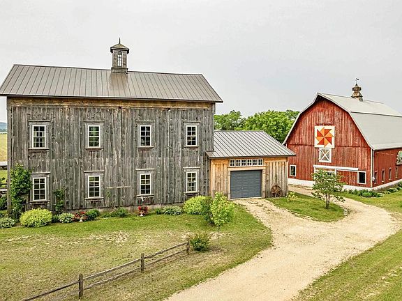 Fly in via corporate jet to nearby Tri-County Airport & own a piece of history. This home was featured on HGTV's You Live in What? Completely refurbished & moved to its current location in 2010. Amazing interiors show all the character of the old mill & include some of the original gear wheels creatively displayed. A recent addition of the 2nd bedroom on the main level is currently used as a sunroom. The expansive open interior space will delight chefs & those who love to entertain. Love old classic Wisconsin barns, look no further. Part of the lower level of the barn is insulated & heated for great workshop space. An old blacksmith shop serves well for more garage space & tractor storage. Nestled in the Driftless area close to Spring Green, the Wisconsin River, Taliesin & golf