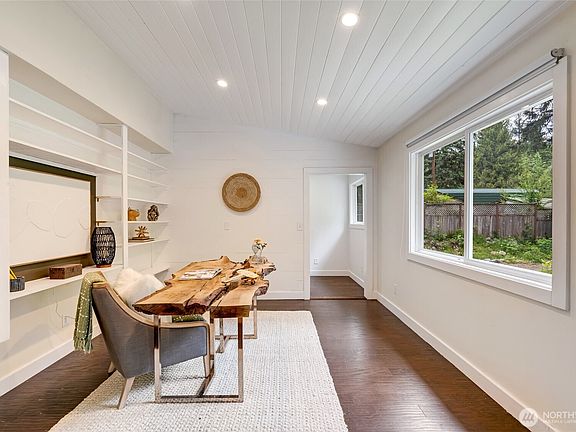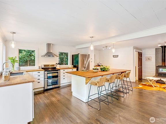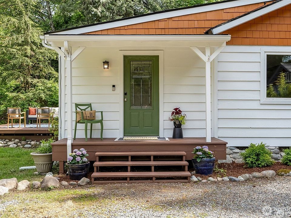 Fully remodeled rambler with 66’ of river frontage! Enjoy a stunning open kitchen with 10’ island, stainless appliances, & river views leading to a spacious re-stained deck, lawn, & custom fire pit. Features include new exterior paint, oak floors, remodeled baths, built-ins, & a large private room with barn doors that can be used as an additional bedroom, office, den, etc! Bonus: separate tiny house—perfect for guests, WFH, or rental. Just 10 mins to I-90, close to Snoqualmie & Tiger Mtn trails. Issaquah School District! FEMA-exempt from high-risk flood zone. Serene living with modern style!