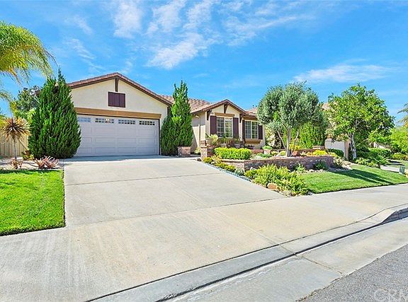 SINGLE STORY POOL HOME!!! This beautiful home features lovely courtyard entrance, an open concept floor plan with a large great room perfect for entertaining family and friends, a gorgeous Pebble Tech pool and spa with cascading waterfall features, and is situated in a cul-de-sac. At 2301 sq ft, this former model home is a 2 bedroom home, but there is also a den and an office that could be converted to a 3 or 4 bd home with closet additions. Elevated ceilings, built-in custom cabinetry, ceiling fans, plantation shutters and a tankless water heater are some of the great features this home has to offer. A wonderful separate formal dining room flows into a spacious open concept family room/kitchen providing plenty of room. The light and bright kitchen has beautiful granite countertops and backsplash, a large island and walk in pantry. Family room with vaulted ceiling and fireplace, Spacious Master Bedroom on separate side of house from other bedrooms/den/office. Three car tandem garage with epoxy flooring. Backyard is ready for summer fun with a sparkling, custom pool/spa featuring a large rock waterfall as well as additional waterfall features in pool and in yard. Enjoy the proximity to Temecula Wine Country and all that it has to offer. Home is located in acclaimed Temecula Valley Unified School District and is within boundaries for Great Oak High School. Don't miss this great opportunity on a hard to find single story pool home in a highly desired location!