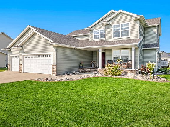 Experience luxury living in this stunning Heritage Homes Ashmore model in Shadow Creek, West Fargo. Expanded with additional square footage and extra windows, this home is bathed in natural light. The main floor features a spacious primary bedroom suite and convenient laundry, perfect for single-level living. The gourmet kitchen is a chef’s dream, with upgraded cabinetry, granite countertops, a butler pantry, and a gas line ready for your grill. Enjoy the seamless flow to the outdoors with maintenance-free decks, ideal for entertaining. The beautifully landscaped yard includes an irrigation system, an underground dog fence and backs directly to a trail, offering privacy and tranquility. Inside, discover new flooring and fresh paint that elevate the home’s modern design. A welcoming front porch and functional drop zone add to the charm and convenience. This home blends elegance, comfort, and thoughtful upgrades in a sought-after location. Don’t miss your chance to own this exceptional property!