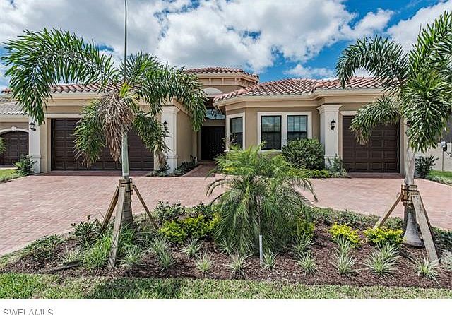 New Construction available for immediate delivery. Located in Riverstone by GL Homes, one of Naples Hottest new developments. North Naples, minutes to I-75 and zoned for "A" rated schools. Recreation area includes a fitness center, social hall, resort style pool, lap pool, whirlpool spa, 5 lighted tennis courts, indoor basketball court, tot lot, children's water play area, game rooms and picnic area. A full-time activities director keeps the community active and social. This home is a Drake model which offers the ultimate in single-story living. The elegant foyer with coffered ceiling leads into a large central living room with expansive sliding glass doors leading out to the covered patio. The kitchen features abundant cabinets, a central island, a walk-in pantry and direct access to a formal dining room. There is also a cozy family room off the kitchen leading to a 4th bedroom and cabana bath. The master suite is at the back of the home, looking out over the lawn and has generously sized His & Her walk-in closets. Spacious master bath has a central Roman tub, his & her vanities and separate shower. All prices subject to increase without notice.