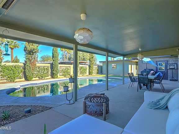 Mid-century style meets easy living in this classic Ralph Haver home. With just over 2,000 sq. ft., this spacious floor plan offers 4 bedrooms, 2.5 baths, open living and dining spaces, family room, and a cozy dining nook. The kitchen features shaker cabinets, quartz counters and stainless appliances. The primary suite includes a designer closet, dual sinks, and a custom walk-in shower. Enjoy relaxing or entertaining in the backyard with a diving pool, covered patio, workout room, and storage shed. Close to hiking trails, local shops, dining, and the 51 freeway—this Haver home blends character, comfort, and location.
