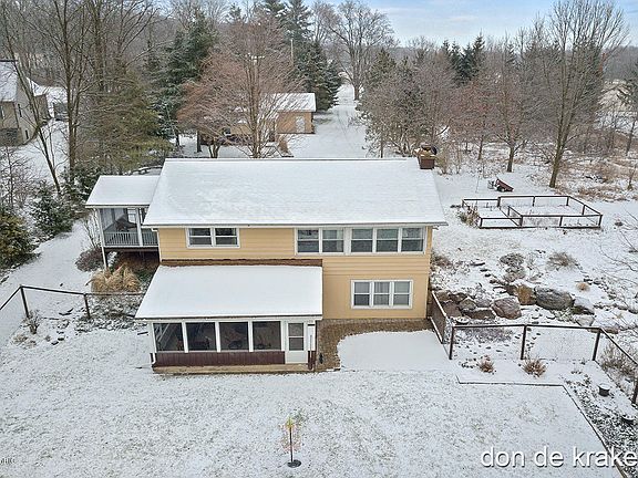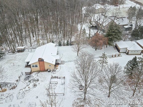 Move in condition.Open floor plan ,front to back.Two Gas fireplaces. 2 full baths.2 screened in porches. 3 stall garage. 30 x 40 pole building . Sets back 250 ft from road. Two lot sold as one