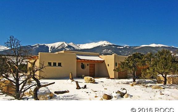 In the owner's words "A custom, southwestern home with many fine features - including: 360 views, 4 Collegiate Peaks from patio/window, borders BLM land, ICF construction, open floor plan, master bdrm/bath with walk-in shower, 1000 sq ft heated garage with 35 storage cabinets, wood burning kiva fireplace, quality windows w/ transferable 2018 warranty, solid custom cherry wood kitchen cabinets w/upgraded appliances, tankless water heater, solid core doors, kitchen skylite;a low maintenance home."