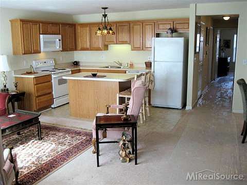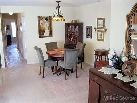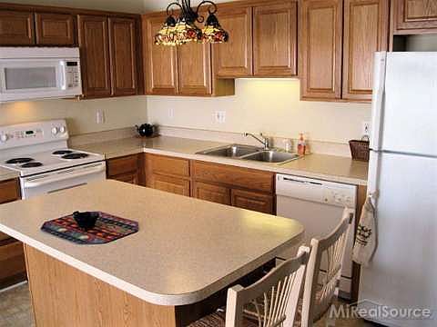 Immediate possession on this Ranch End Unit that is meticulously kept and spotlessly clean with a classy open layout, and includes floating island, door wall to a covered patio overlooking stream, Full bath off the master bedroom, walk-in closet, stove, fridge, microwave, custom window treatments stay, right next to the community room that is perfect for private parties and functions, carport for this unit is #7. Close to churches, schools, shopping and all major conveniences.