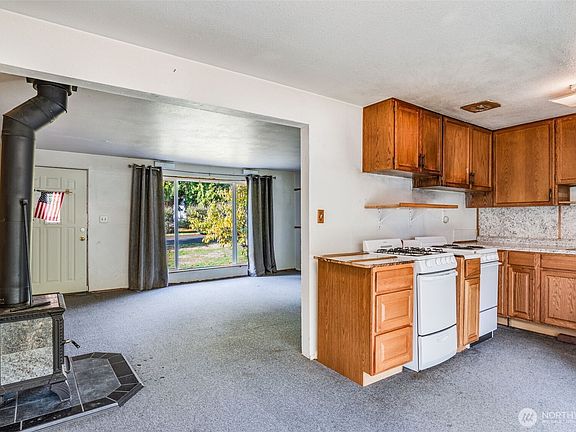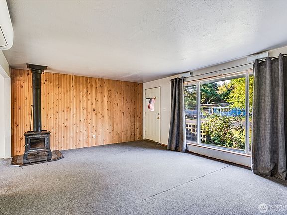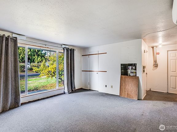 Fabulous investor opportunity awaits with this 3 bedroom rambler situated on a huge lot on a dead end street! Ready for your renovations or look into future building potential with RM3600 zoning. Home offers an oversized primary bedroom and spacious living room with a ductless mini-split unit for heat and A/C. Home also has a wood burning fireplace to stay cozy during the winter. Vinyl windows in most rooms. In addition to the full bath, one bedroom has private sink, second bedroom has additional toilet installed in closet. Covered carport fits two cars. Huge, level backyard has fruit trees, two storage sheds, and a side entry gate for RV or boat storage. Easy drive to commuter routes and Federal Way shopping. Don't miss out!