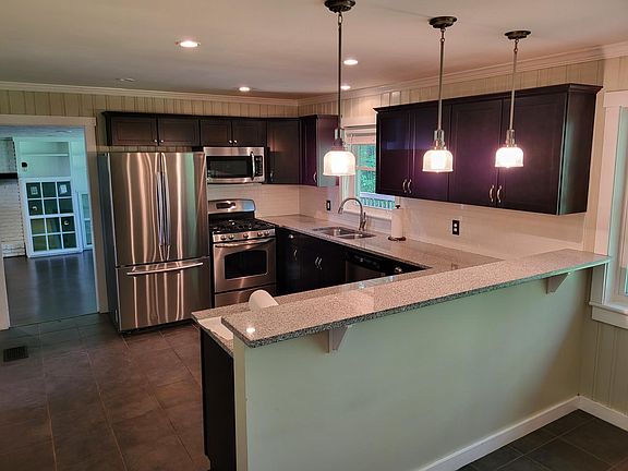 Beautiful single-level ranch home in a centric and accessible location, nestled in quiet street but minute from shops, groceries, restaurants, etc. Beautiful kitchen with granite counter tops, SS appliances, newer cabinets. Refinished hardwood floors, newer double pane insulated windows. Full finished basement with extra bathroom and living area with fireplace and wood burning stove. Great yard and deck with lots of privacy. Utilities are included with a short term lease of 6 months. Perfect for traveling nurses. Owner pays water, gas, and electricity. Renter pays for internet. Security deposit and first month's rent due at signing.