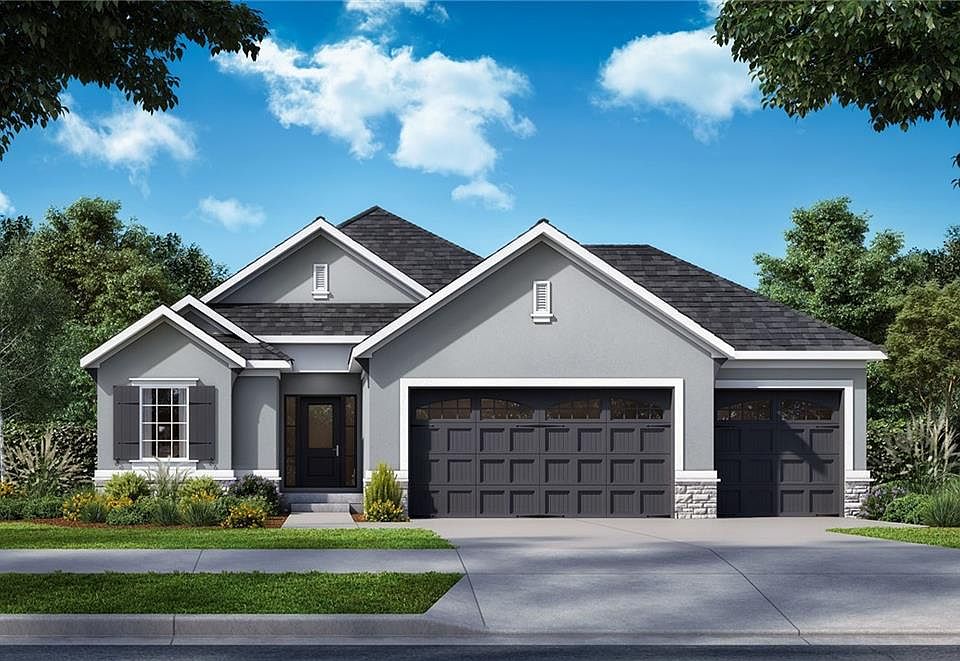 Welcome to this fantastic Reverse 1.5-Story Sonoma Plan by SAB Homes in Southern Meadows! This home sits on lot 66 in Overland Park’s newest premier community. This beautiful 4-bedroom, 3-bath reverse 1.5-story offers the perfect blend of designer style, functional layout, and modern comfort. Step inside to an open, airy main level featuring tall ceilings, a hidden staircase, and large windows that flood the living space with natural light. The chef’s kitchen boasts abundant cabinetry, a spacious island overlooking the main living area, and high-end finishes throughout. A convenient mudroom sits just off the 3 car garage entry. Relax outdoors on the covered deck with ideal evening shade, overlooking the large corner lot. The finished daylight lower level provides even more living space, including two additional bedrooms, a full bath, generous recreation area, and a fantastic walk-up bar perfect for entertaining. This stunning home brings together thoughtful design, premium craftsmanship, and a highly sought-after location in Southern Meadows. A must-see! Home will be complete in Feb 2026.
