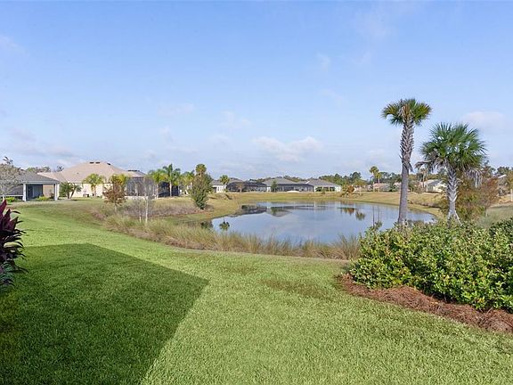 Presenting the exquisite Gardenia Designer model, nestled on a sought-after waterfront lot and featuring an array of luxurious upgrades. The exterior boasts a beautifully painted driveway and an inviting front screened porch. Step inside to discover newly installed wood plank vinal flooring that graces the living areas.At the heart of the home lies the gourmet kitchen, which showcases light gray cabinetry, quartz countertops, a full backsplash, under-cabinet lighting, premium stainless steel gas appliances, a generous pantry, and a charming breakfast nook perfect for casual dining. The formal dining room and living room, both adjacent to the kitchen, has ample space for entertaining guests.The open-concept living area transitions effortlessly into a glass-enclosed lanai, complete with a mini-split air conditioning system and roll-up shades, enhancing the home's livable space. This lanai, with its stunning water views, opens to an expanded birdcage that features a privacy screen adorned with a tropical scene, ideal for outdoor enjoyment.Designed with a split bedroom floor plan, this home provides a private wing for guests. The spacious primary bedroom offers picturesque water views, and the tray ceiling in the suite adds a touch of sophistication. His and her closets lead to a spa-like ensuite bathroom, equipped with a Roman shower and dual vanities. All windows throughout the home are fitted with plantation shutters.The laundry room, which offers additional storage, connects to a two-car garage that includes a golf cart garage. This garage features a pull-down ladder for attic access, and a magic lift to easily store heavy items. Please note that the parrot chandelier in the dining room and entryway will be replaced and do not convey.Enjoy the proximity to Deluna pool(a short walk away), and the Water Lilly and Everglades recreation centers, just minutes away. Deluna is a hidden gem neighborhood that provides easy access to all new amenities. By golf cart, it's a short 13-minute ride to Brownwood, 8 minutes to Publix, 20 minutes to Sawgrass, and approximately 25 minutes to the New Eastport.