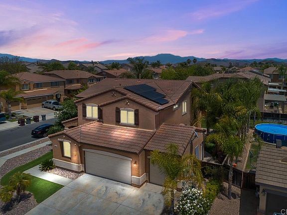 Amazing price for this HUGE HOME! Bring all offers to this 5 bedroom, 3 bathroom, 3,113sf home that sits on a 6,534sf lot! Priced to sell at $645,000! This home has SOLAR, a fully remodeled kitchen, large loft upstairs, first floor bedroom and full bath. The yard is fully complete with a custom patio, built in BBQ and low maintenance, cost-effective turf. A conveniently attached three-car garage with overhead storage racks, and a 10x10 additional storage room. Step into the beautiful kitchen hosting an abundance of cabinetry and quartz counter tops with a modern suite of appliances. Close to the 215 Fwy and walking distance to community Park and Elementary School. You're just a few minutes from the wineries in Temecula, fabulous shopping, and much, much more! Don't let this opportunity pass you by. A must see!