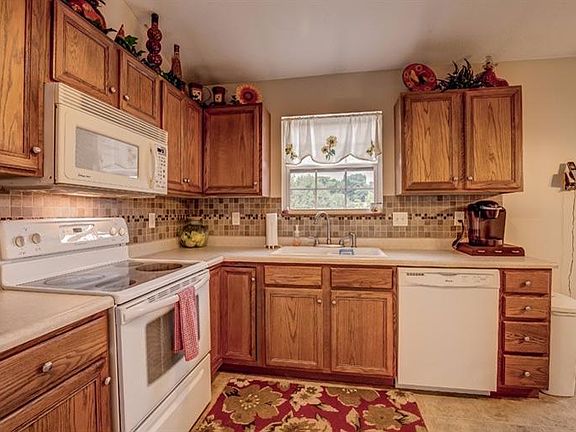 All the updates! Tiled floors in bathrooms, kitchen and landing downstairs. Tile back splash, hardware on all cabinets in kitchen, refrigerator stays.New carpet throughout, new paint throughout. Re-stained all trim and window sills throughout. Painted all doors throughout Updated all light fixtures, ceiling fan and door knobs throughout. Updated faucets in kitchen and bathrooms with new cabinets.