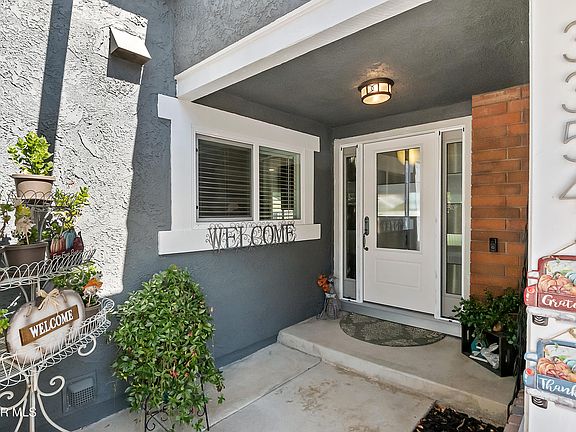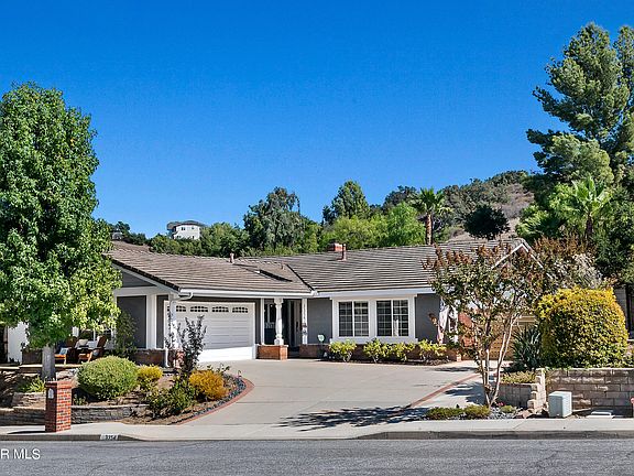 Beautiful and impeccably maintained SINGLE-STORY residence with RV access located inside a charming neighborhood of Newbury Park. You are initially greeted to a walkway with a unique entry door. Inside, this charming residence boasts three bedrooms, two bathrooms, and a direct-access two-car garage. Amazing open living space floor plan with vaulted ceiling, fireplace in the living room, and attractive sliding glass door in the dining room and French doors in the living room. The kitchen includes all stainless appliances, an abundance of cabinet storage, a built-in tech desk, and a convenient island with room for breakfast bar seating. The primary bedroom includes a walk-in closet and a chic barn door at the primary bathroom. Custom wall medicine cabinet at the second bath. Additional interior features include beautiful flooring throughout, ceiling fans throughout, A/C, and attractive two-panel interior doors. Outside, you can enjoy the sunsets from the custom wooden deck in the front or enjoy the hillside and variety of fruit trees from the spacious patio in the back. Access the local hiking trails from your own backyard! Kimber Park, local shopping, and schools are conveniently located nearby.