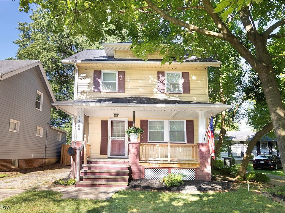 Welcome to this charming 3-bedroom home nestled on a picturesque, tree-lined street in sought after West Park location. Situated on an extra-deep, fully fenced lot with a two-car garage, this property offers both privacy and room to grow. Relax and entertain friends and family on the inviting covered front porch and back yard patio - outdoor furniture and pergola to stay! Discover a warm, welcoming interior featuring today's colors, a great updated kitchen and a newer full bath, blending modern convenience with classic character. Enjoy the fabulous community park just steps away that includes a playground, sports fields, and paths to walk pets. With its sought-after location, close to a nearby community park, shopping, dining, and easy highway access, this West Park gem is perfect for anyone looking for comfort, charm, and convenience.