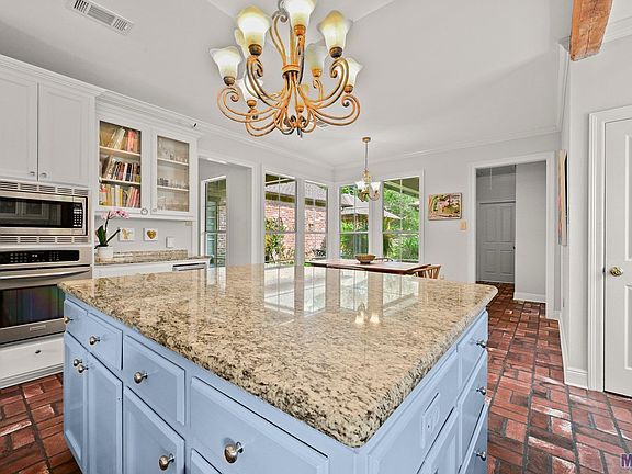 This beautiful home has been well loved and meticulously maintained. The entry offers a welcoming front porch with French doors that strikes the perfect balance of materials for a true Southern Louisiana home style. Enter into the foyer to a room filled with natural light with formal dining and Living room adjacent to the entryway. The large kitchen and breakfast area have been tastefully updated with 3CM Granite counter tops, glass front cabinets, brick floors and stainless steel appliances including gas cooktop and and beverage fridge. The living room is anchored by a wood burning fireplace accented with marble tile and built-ins. Each of the generous bedrooms (4) feature solid vinyl plank flooring throughout (no Carpet). Bathrooms are also updated with granite counter tops and custom glass shower enclosures. The master bathroom has separate shower and soak tub with his-and-her sink and a walk in closet. Set outside of the Master Bedroom through private French doors to enjoy THE back yard: a TOTAL OASIS for your private enjoyment. The backyard features a large gazebo with stamped concrete patio, gutters & drainage systems, outdoor cooking area and a gorgeous Live Oak Tree. Also in the backyard is a 30kw water cooled Kholer WHOLE HOUSE GENERATOR, green house and planter boxes! You'll be hard pressed to find a better backyard. All of this within the highly desirable subdivision on Riverbend - just minutes from LSU Campus and convenient to groceries, coffee, restaurants and downtown Baton Rouge. Enjoy a secret BREC Park in the neighborhood with Play area, Green space and TENNIS COURTS!