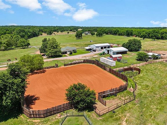 Discover the perfect location with a blend of comfort and functionality in this beautiful 20-acre ranch property. Just off I-35, this charming home offers 3 bedrooms and 2 baths, including a spacious master bedroom with ample built-in storage. The home has an open floor plan including a large pantry area and large laundry and mud room! The property features quality pipe fencing and is crossed fenced to make 7 pastures creating a turnkey cattle or horse operation. This facility is set up with the working cow horse and cattle in mind but is also very versatile to go any direction needed. The 36' x 48' breezeway horse barn offers 6 stalls, a wash-rack, and a tack room. The arena is 125' x 125' with tall cedar planking. Property also includes a 45' x 60' shop with 5 roll-up doors, including a dog kennel area and several storage buildings. There is income producing opportunities as well as equipment that could be purchased or may stay with the right offer. This property is a must-see so scheduled your showing today!