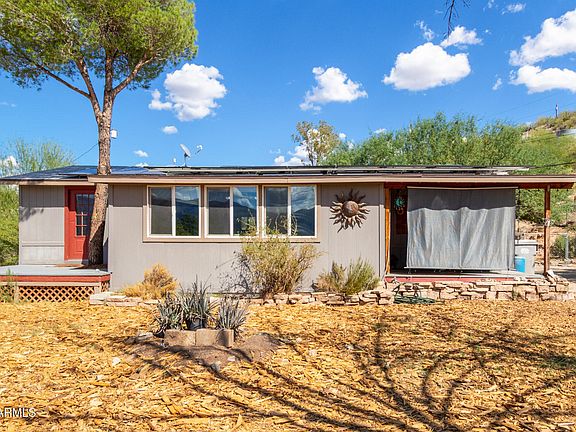 Its all about the VIEWS! This 2 bed, 2 bath hillside home combines comfort with breathtaking scenery. The split floor plan offers an open kitchen with updated cabinets, and newer fixtures. Vinyl wood-look floors, tile, and neutral carpet flow throughout. The primary suite features a barn-style door, cedar closet, soaking tub, and private exit, while the guest room includes a walk-in closet and updated bath with tiled shower. Enjoy the Arizona sunroom or step outside to multiple decks with epic mountain views. The fenced yard, fruit trees, landscaped grounds, and powered storage shed complete this gem. Welcome home!