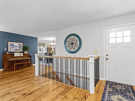Step inside to find a beautifully updated interior. The heart of the home, the kitchen, has been remodeled and features stylish solid surface countertops, making meal preparation a pleasure. The main level is designed for easy living, offering four comfortable bedrooms, complemented by a full bathroom, a 3/4 bathroom, and a convenient half bath. In the spacious living room, you’ll find beautiful hickory wood floors that lend warmth and character, centered around a cozy fireplace—the perfect spot to gather on a chilly evening.