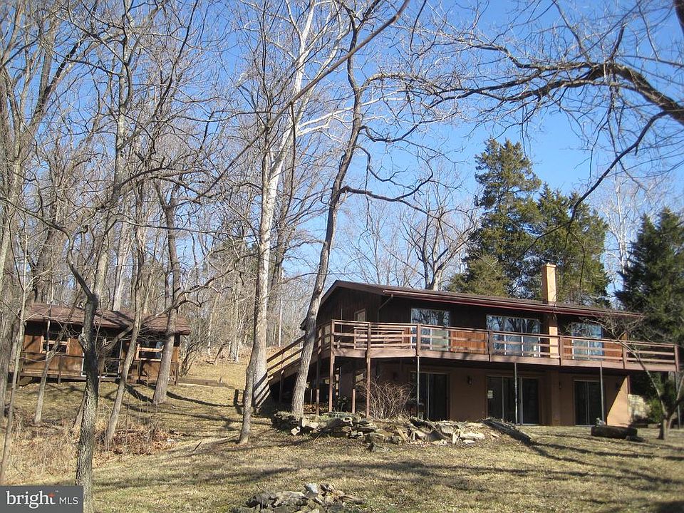 This 3BR/2FB retreat is on 10 wooded acres (2/5 acre lots) in a quiet enclave of homes. Large vaulted great room with wood floors opens to large deck, lwr lvl rec room w/woodstove & walkout to patio, roomy kitchen. Detached garage w/space for workshop or studio. All new roof and gutters.Terraced garden with deer fence. Gated community with pool and Shenandoah River access. Convenient to Rt.7 & 50.