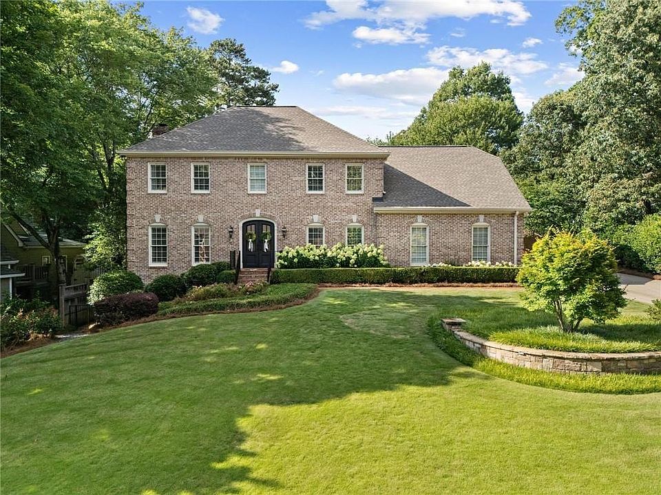 Welcome to a four-sided brick "jewel box" residence, ideally located in a sought-after, established East Cobb neighborhood. Meticulously maintained and thoughtfully renovated with no expense spared, this home showcases a professionally designed interior with a chic transitional aesthetic and high-end finishes throughout. Enter through arched double iron doors with operable glass panels into a foyer that immediately sets the tone for the elegance within. Adjacent to the entry, a generously sized dining room is opposite an office that offers possibilities of a library or martini room. The family room with a gas fireplace flanked by built-ins seamlessly connects to the kitchen and opens to a sun-drenched four-seasons room, offering ample room for entertaining. The gourmet eat-in kitchen is a showstopper, featuring quartzite countertops, a Sub-Zero refrigerator, Wolf range, Wolf steam oven and a Bosch dishwasher. An artisanal custom hood handcrafted by a local ironsmith is a focal piece. An oversized window above the sink frames an idyllic view of the picturesque backyard. A separate coffee/wine bar/butler’s pantry adds sophistication and convenience. Upstairs, the spacious Owner’s Suite is a serene retreat with a coffered ceiling and a large walk-in closet outfitted with custom storage systems for drawers, shoes, and accessories. The ensuite bath exudes effortless luxury with heated marble floors, a double vanity, soaking tub, frameless glass shower and a private water closet. Three secondary bedrooms each offer their own distinctive character, and the updated upstairs bath is a showcases fresh design and practicality. A second staircase leads to a well-appointed main level laundry room combining form and function with a sink, cabinetry and built in desk. A landscape architect created a backyard paradise anchored by an architect-designed pavilion featuring an oversized fireplace, infrared heaters, a clerestory window, skylights, and a fully equipped outdoor kitchen. Three wide steps around the perimeter offer a graceful segue into the lush flat yard. The fully finished basement is designed for entertaining, featuring custom cabinetry and quartzite countertops—ideal for hosting gatherings of any size. A spacious fifth bedroom and a full bathroom provide comfortable accommodations for overnight guests or extended stays. Truly turn-key ready the roof and both HVACS were replaced in 2020. The vibrant community with swim tennis is perfectly nestled between the natural beauty of the Sope Creek shoals and the unbeatable convenience of I-285 and Sandy Springs.This exceptional property blends timeless style, modern luxury, and everyday comfort in one of East Cobb’s most desirable communities.