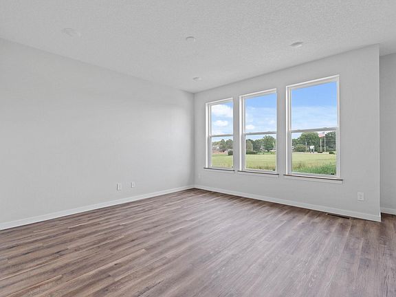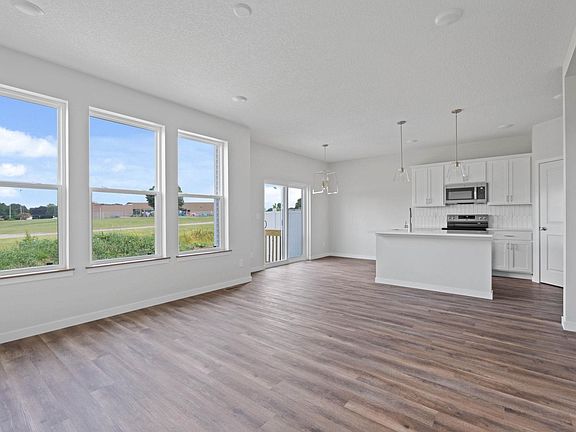 Welcome to your dream home! This stunning new construction twinhome features a two-story layout, 3 bedrooms, and 2.5 bathrooms, offering spacious living in a picturesque setting. The lower level is finished with a large rec room. As you approach, you'll appreciate the two-stall attached garage, ensuring convenience and protection for your vehicles year-round. The home is situated on a walk-out lot, creating a seamless blend of indoor and outdoor living. Step outside to your backyard oasis, where you'll enjoy serene views of vast cornfields, offering both privacy and tranquility. Inside, the open-concept main floor boasts an abundance of natural light, creating an inviting atmosphere. The kitchen features modern GE appliances, stunning quartz countertops, and a spacious island – perfect for culinary enthusiasts and entertaining guests. The adjoining living area is designed for relaxation, with plenty of room to unwind by the fireplace. Upstairs, you'll discover three generously sized bedrooms, including a master suite with an ensuite bathroom for added convenience. The additional bedrooms are versatile spaces, ideal for family, guests, or a home office. *Optional $100/month for lawn and snow services