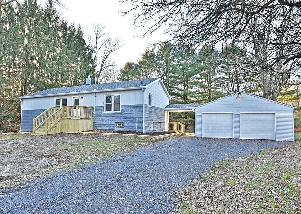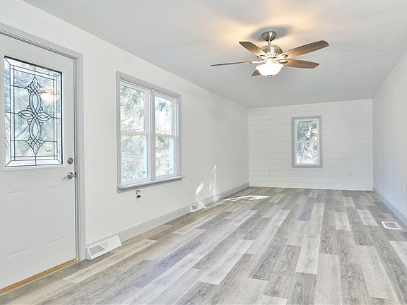 Tastefully modern and traditionally cozy, this welcoming Warren Township home isn't one to miss! The move-in ready ranch combines a surprisingly spacious, three-bedroom layout with elegant design choices throughout. Sat back off the road and nestled in tall trees, you'll instantly fall in love with how the sunshine dances through the trees, making each room feel truly special and exceptionally scenic. Stepping inside the formal entry, a deep-set living room opens with ash colored flooring and a shiplap accent wall. The nearby dining area continues past the cool, light gray trimmed openings, revealing its rustic hanging light. An inviting half bath enjoys an elegant vanity and hookups for first floor laundry. Back across the kitchen, a substantial island brings easy dining, serving or prep space alike while its butchers block countertops continue past the stainless farm style sink and gorgeous glass tiled backsplash. Opposite the home, three inviting bedrooms each showcase carpeted flooring and personal closet space. The full main bath wows with its matching backsplash and elegant tile work that graces the floor and shower. Additional storage is located at the basement level and included storage shed, while an attached two car garage lends to parking. Updates in 2021: roof, windows, furnace & AC, HWT, NEW septic system, new water softener, flooring throughout, garage doors & opener, light fixtures, front porch, new gravel driveway and so much more! Plus a 1 year home warranty!