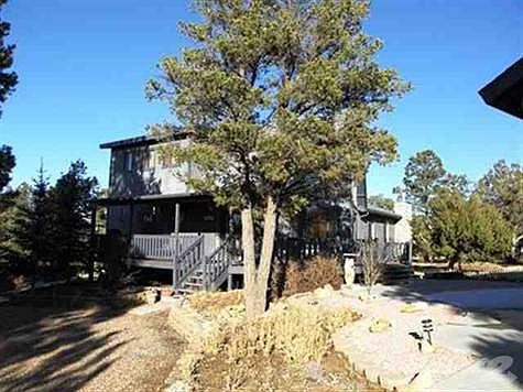 Secluded and private describe this charming 3br 3ba chalet in the pines! The master br & ba plus a guest br & ba are downstairs and huge loft/3rd br & 3rdba are upstairs. Lots of trex decking with covered and uncovered decks plus a nice patio area leading to the detached 2 c garage. Load of trees and veryprivate plus close access to national forest for quads hiking or horses. Pride of ownership shows and RV hookup. Circular driveway. Dining room lightfixture to be replaced. Horses ok and priced to sell.