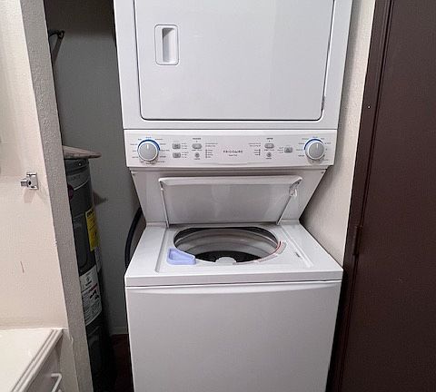 Washer and dryer in unit. Very clean. Nice quiet location. Tenant pays electric. No smoking in buildings. Assigned parking spots.