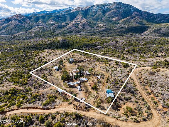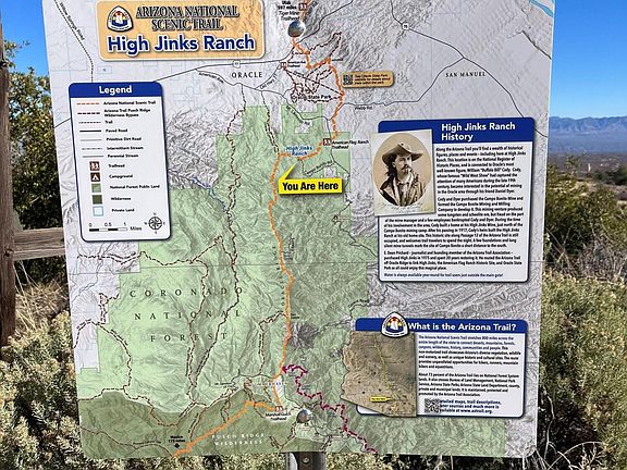 Step into a timeless era by seizing the chance to own a slice of Western history in Oracle, Arizona - a town steeped in the echoes of the gold and silver mining boom. This distinctive property, named High Jinks, stands proudly along the Arizona Trail, providing shade and respite to the myriad of travelers who pass through. Graced with rustic elegance, High Jinks holds the esteemed title of a National Historical Site, its very soil once touched by the legendary Buffalo Bill Cody during his mining exploits.Nestled within the embrace of the Coronado National Forest and serving as the gateway to Mount Lemmon, this property offers unparalleled privacy and panoramic vistas that stretch across the expansive landscape. The main floor exudes charm with its rustic construction, featuring a library, dining room, kitchen, den, two bedrooms, and one and a half baths. The ground floor unveils an apartment with a modern flair, with two bedrooms and one bath, and ample windows that frame breathtaking sunrises and sunsets.