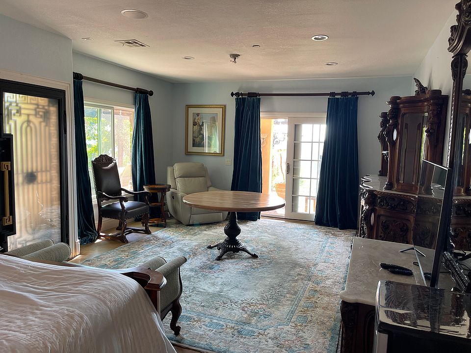 Nothing like this, MUST SEE! FURNISHED MASTER BEDROOM WITH ATTACHED BATH in our Hilltop estate on 1.5 acres with tenant(s) on separate floor with separate entrance, kitchen, dining, living, fireplace, fire ring, and outdoor seating areas than the husband and wife owners. The room is elegantly finished. GO ALL MONTH AND RARLEY SEE HUSBAND AND WIFE OWNER.