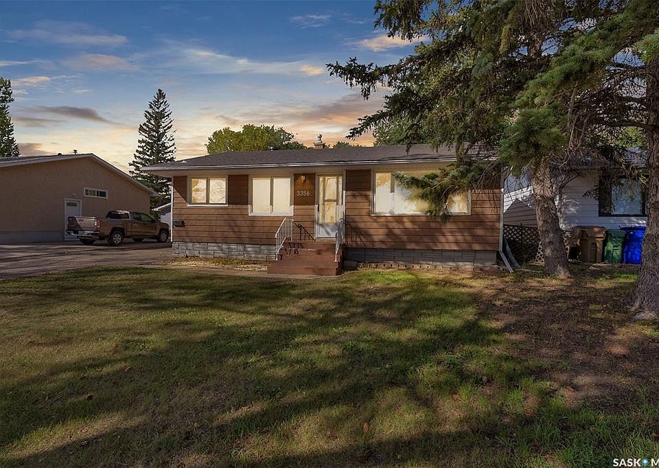 Welcome to 3356 Grant Road, steps from the University of Regina! This 1,023 sq ft bungalow is perfectly situated in the heart of Whitmore Park, just a short walk to the University of Regina, ideal for students, families, or investors alike. The main floor features a bright and spacious layout with new flooring, fresh paint, and updated ceilings throughout. The kitchen offers great counter space and plenty of cabinetry, overlooking the front yard with large PVC double-pane windows throughout the house that fill the home with natural light. Downstairs, you’ll find a fully developed lower level complete with a second kitchen, bedroom, bathroom, and living space. Additional updates include brand-new shingles and refreshed finishes throughout. With its unbeatable location near schools, parks, shopping, and the university, this home offers excellent flexibility and incredible value. Room in basement used as bedroom does not meet current legal egress requirements.