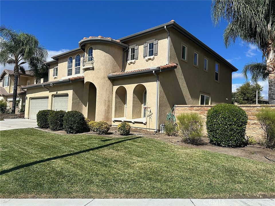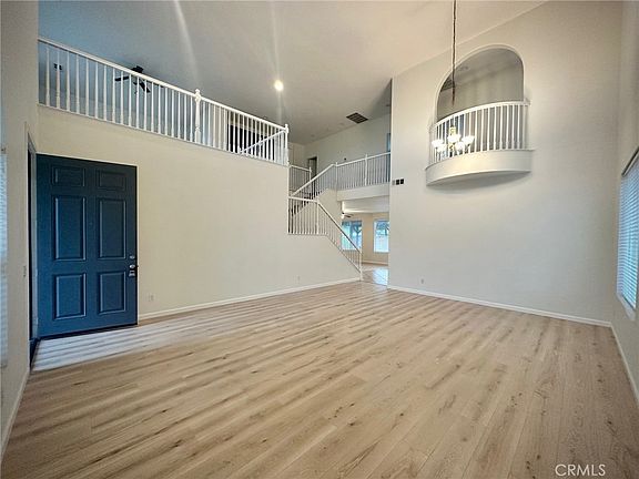 Beautiful executive home with tons of natural light and high ceilings giving you lots of room to decorate to your style! Enter and you'll find a very spacious living room/dining room combination with brand new neutral-colored LVP flooring. Take a look up and you can enjoy the view of the "Romeo" balcony upstairs. The kitchen features a large center island, granite countertops, a large walk-in pantry, and a desk area off to the side with special organization cabinets and cubby slots. The family room has a fireplace and a large alcove for your entertainment center. Downstairs features a Bedroom and full Bath, plus a very large laundry room with sink and a special storage closet under the stairs. Upstairs you'll find more storage, a huge loft, a special nook, 2 guest bedrooms plus the large Primary Bedroom and Bath. No fighting over closet space here... you'll find two separate large walk-in closets! The back yard is spacious with plenty of room to entertain. Corner lot is great for privacy. Top-rated schools as the home is located in the highly sought-after Great Oak High School territory. Temecula features so many beautiful parks and city amenities for residents. Plus, easy access to the freeway and wine country!