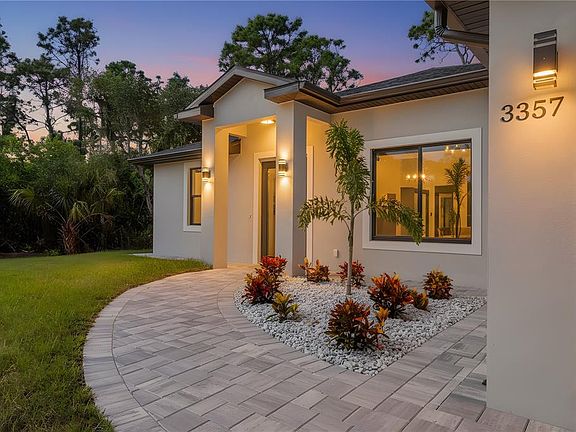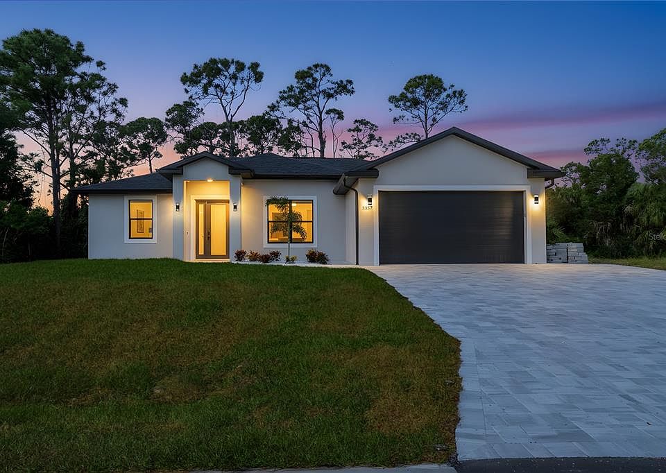 One or more photo(s) has been virtually staged. This stunning 1,589-square-foot modern home, located in a desirable area, is ready for immediate move-in. Featuring 3 bedrooms and 2 bathrooms, this property redefines contemporary living. Upon entering, you'll be welcomed by premium finishes throughout. Elegant vinyl plank flooring flows seamlessly throughout the home, eliminating the need for carpet maintenance. The living room boasts a high tray ceiling, enhancing the airy atmosphere and complemented by ample lighting fixtures and modern design elements. The centerpiece of the home is a beautifully designed chef's kitchen, complete with stainless steel appliances, a spacious center island, a walk-in pantry, quartz countertops, and a stylish backsplash. The laundry room is equipped with a utility sink and includes a washer and dryer for added convenience. The garage features an electric car charging station, and the property is enhanced by a meticulously paved driveway and sidewalk surrounding the house for added curb appeal. Additional features include impact windows and doors, a lovely caged pool and spa with a picturesque nature view, and numerous other upgrades. Contact your agent today to schedule a showing!