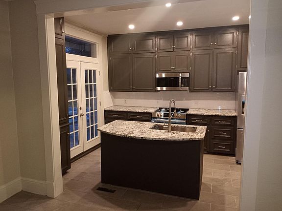 Two bedrooms downstairsTwo bedrooms upstairsNew countertopsLarge wooden deckFormal dining roomFrench doorsLarge backyard