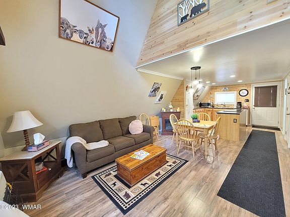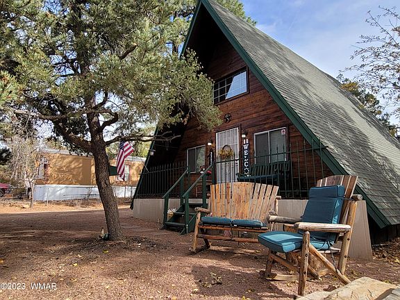 SELLER WILLING TO PAY 2% TOWARD CLOSING COSTS! This beautiful A-Frame cabin has had so much love put into the interior over the recent years. Great secondary home, or even vacation rental. Nicely updating & shows pride of ownership through and through. Newer roof, within last 7 years. Newer septic installed. Stunning interior remodeled, with beautiful kitchen that includes newer appliances, cabinets & updated counter tops. Spacious island with new electric cook top. Dual Pane windows & new tongue & groove exterior, Room for sleeper sofa downstairs, spacious room/loft upstairs currently accommodating two beds, half bath upstairs. Spacious walk out balcony. Extra-long driveway, no HOA bring your toys! Nice mixture of trees; one tall ponderosa, cedar, juniper, pinon, & a mature apple tree.