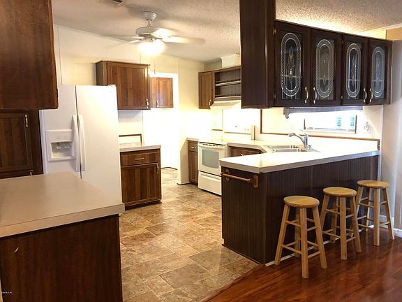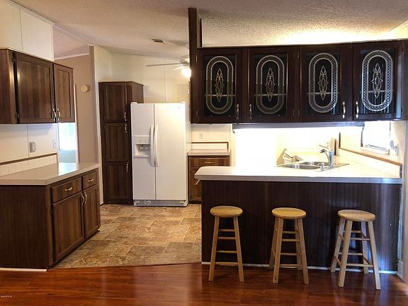Meticulously cared for 3 bedroom 2 bath mobile with split bedroom plan. Spacious kitchen with tons of storage. Beautiful wood flooring in living areas. Master suite with walk in closet, his & her sinks in bath and separate shower and garden tub. Updated spare bathroom with steel tub and custom tile. Inside laundry too. Fenced back yard is your oasis! Screened porch overlooks in-ground pool deck complete with built in bar! Utility shed too! Just five miles from Hwy 200, convenient to I-75, just three miles from the Cross Florida Greenway land bridge trail head and newly paved bike trails!