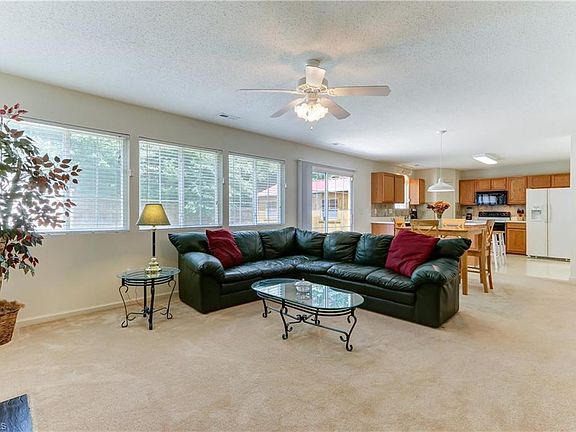 BACK ON THE MARKET DUE TO BUYER FINANCING FALLING THROUGH. Nice, clean & freshly painted home in popular Broadstone Village with wonderful front porch! Just off of the cul-de-sac, this home features so much space w versatile Living Room & separate Den that is open to the Kitchen with Island and 4 Bedrooms & 2.5 Baths. Master Bdrm features double sink vanity and Garden tub. Great convenience w upstairs laundry. Large backyard w great patio area for entertaining and storage building. Low HOA w pool.