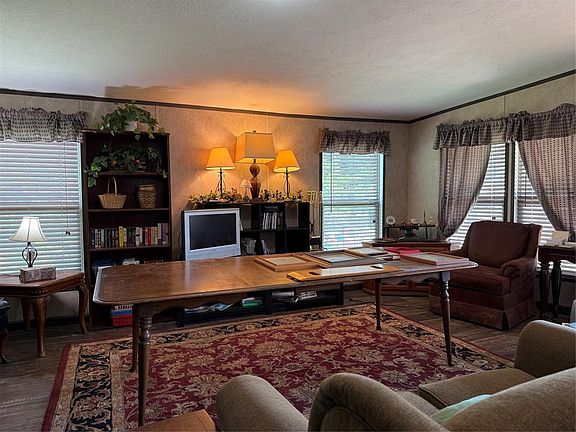 Beautifully framed by treesLarge fenced yardDouble-wide homeFive acres of landPrivacy and peace