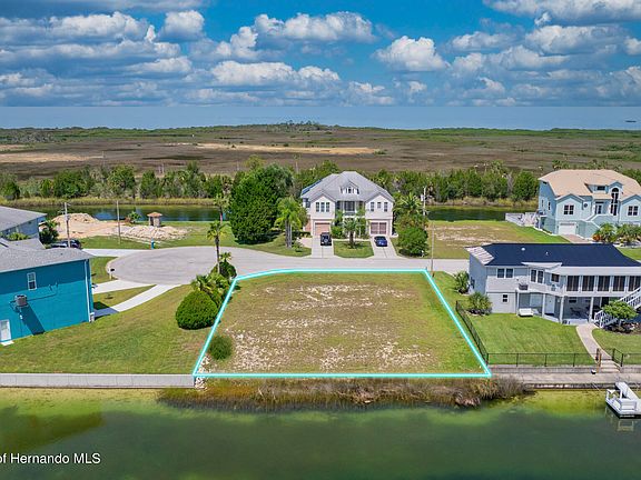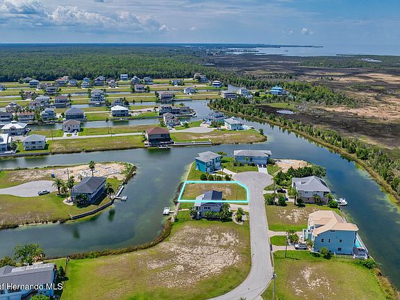 Come Build your dream home in Hernando Beach South! This waterfront lot is 8272 SF with 85' of water frontage! The $325 annual Homeowners Association fee includes lawn maintenance until your new home is constructed and access to the community boat ramp. NO SHORT-TERM RENTALS ALLOWED in Hernando Beach South. Hernando Beach is a charming waterfront community located in Hernando County, Florida. Known for its serene atmosphere and stunning views, this area is a popular destination for those seeking a relaxed coastal lifestyle. Situated along the Gulf of Mexico, Hernando Beach offers a variety of waterfront properties, including single-family homes, and vacant land. Many of these properties feature private docks and boat lifts, allowing residents to easily indulge in boating, fishing, and other water activities. In addition to its waterfront appeal, Hernando Beach boasts a range of amenities and recreational opportunities. The nearby Weeki Wachee Springs State Park provides opportunities for kayaking, paddleboarding, and even swimming with manatees. For those who enjoy golfing, Hernando Beach is in close proximity to several golf courses, offering scenic fairways and challenging play. The community is also home to a variety of restaurants, shops, and entertainment options, ensuring residents have everything they need within reach. With its picturesque surroundings, waterfront access, and convenient amenities, Hernando Beach is a sought-after location for those looking to embrace the coastal lifestyle. Don't miss out on this incredible opportunity to own a piece of paradise! Embrace the waterfront lifestyle you've always dreamed of and make this land your own. Contact us now to schedule a viewing and start planning your coastal masterpiece. Water, sewer, and power connections are located at the street. Property is located in a flood zone so any home constructed will need to be elevated. R1B zoning for a single-family home. (Please note that lot lines shown on aerials are approximate.)