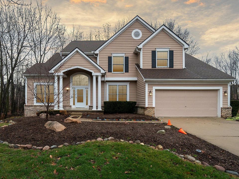 FOUR BEDROOM, THREE AND A HALF BATH COLONIAL LOCATED IN THE CUL-DE-SAC OF THE CROSSINGS SUB! AWESOME LOT LOCATION SURROUNDED BY TREES ON OVER HALF AN ACRE. TWO STORY GREAT ROOM WITH SOARING CEILINGS AND STONE FIREPLACE PERFECT FOR COZY NIGHTS IN. OPEN FLOOR PLAN WITH TONS OF STREAMING LIGHT AND MORE THAN ENOUGH ROOM TO HOST AND ENTERTAIN! ORIGINAL HARDWOOD FLOORS THROUGHOUT ENTIRE FIRST FLOOR JUST NEED A LITTLE REVIVING TO BRING THEM BACK TO LIFE AND MAKE THEM SHINE AGAIN! UPDATED KITCHEN W/ GRANITE COUNTERTOPS AND CONVENIENT GRANITE CENTER ISLAND. STAINLESS STEEL APPLIANCES THAT STAY INCLUDING FRENCH DOOR REFRIGERATOR W/BOTTOM FREEZER, DOUBLE OVEN, BUILT IN GAS COOKTOP AND DISHWASHER. LIBRARY/STUDY AREA ON MAIN FLOOR WITH SERENE VIEW FROM BAY WINDOW OF WOODED PRIVATE LOT. ALL BEDROOMS HAVE MORE THAN ENOUGH SPACE WITH PRIMARY FEATURING WALK IN CLOSET AND JETTED TUB WITH DUAL SINKS IN BATHROOM. PARTIALLY FINISHED DAYLIGHT BASEMENT NEEDS SOME CARE AND YOUR VISION BUT IS NEARLY COMPLETE WITH WET BAR, TILE FLOOR, DROP CEILING AND TONS OF EXTRA ROOM FOR RECREATION AREA AND STORAGE. DOOR WALL OFF KITCHEN LEADING TO SECOND STORY DECK PERFECT FOR OUTDOOR ENTERTAIMENT SPACE IN THE WARM MONTHS! CLOSE TO PARK AND PLAYGROUND AND ALL SOUGHT AFTER SCHOOLS OF ROCHESTER HILLS. TONS OF POTENTIAL WITH THIS ONE IF YOU ARE WILLING TO GIVE IT A LITTLE TLC!